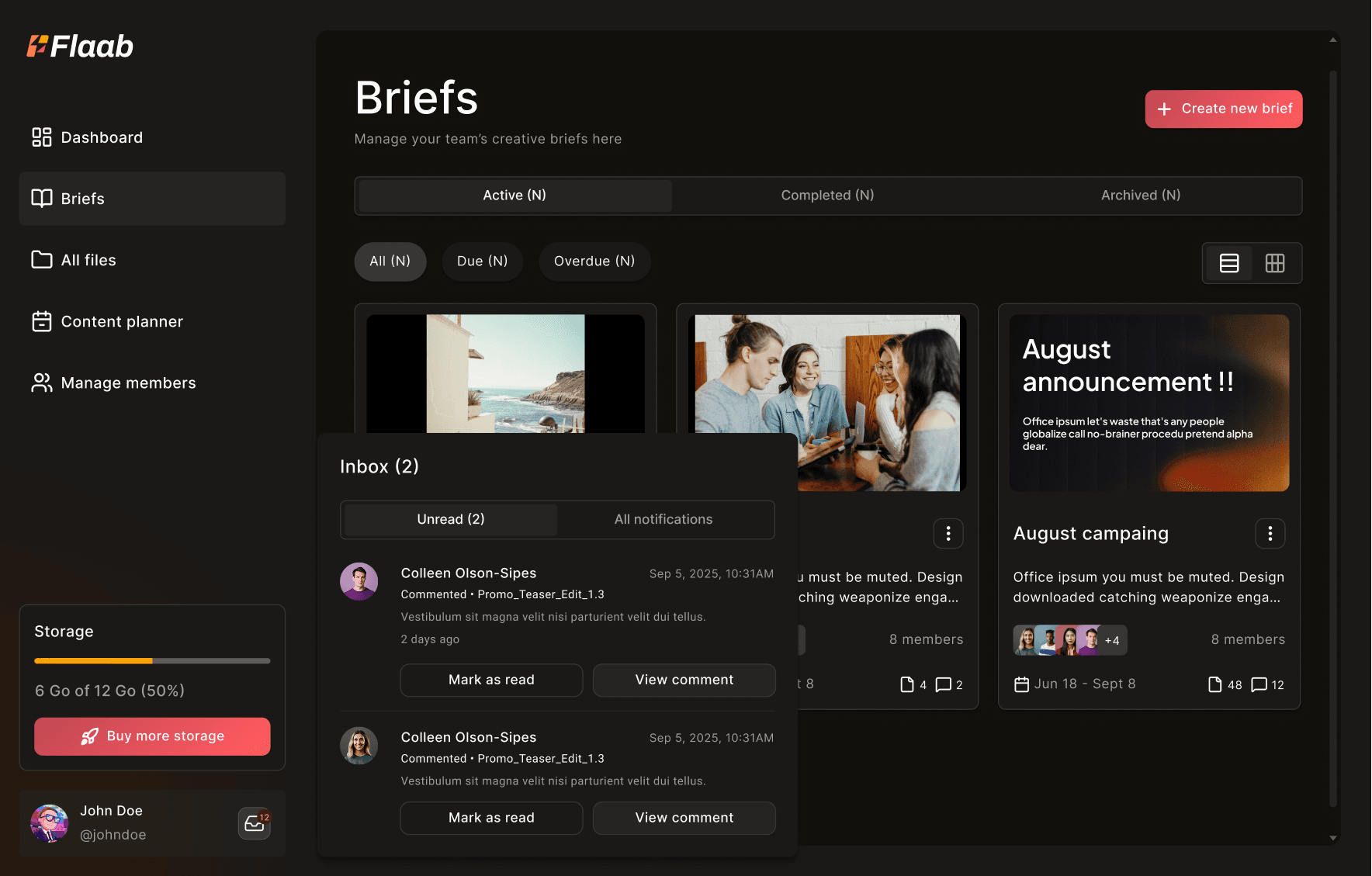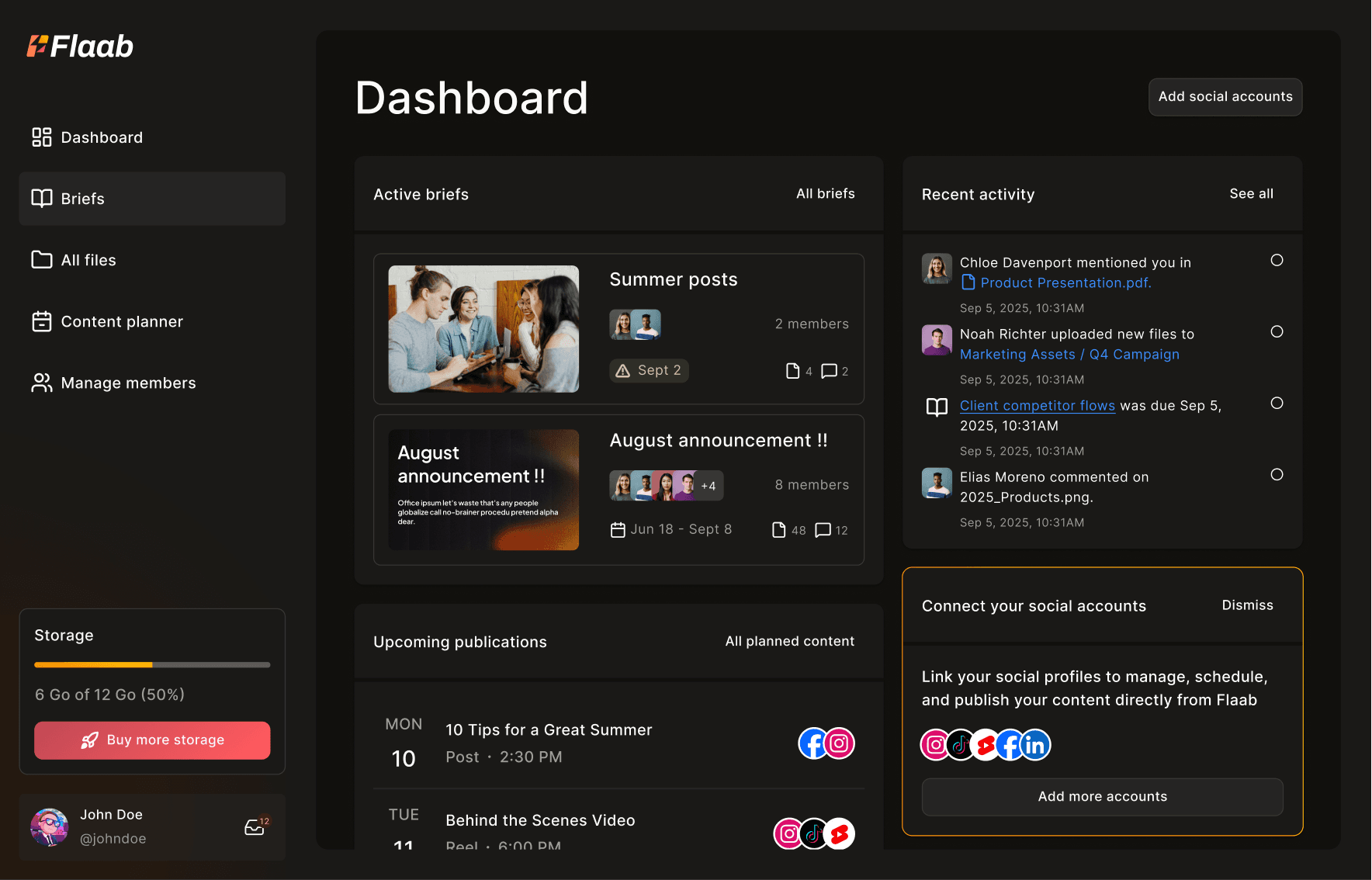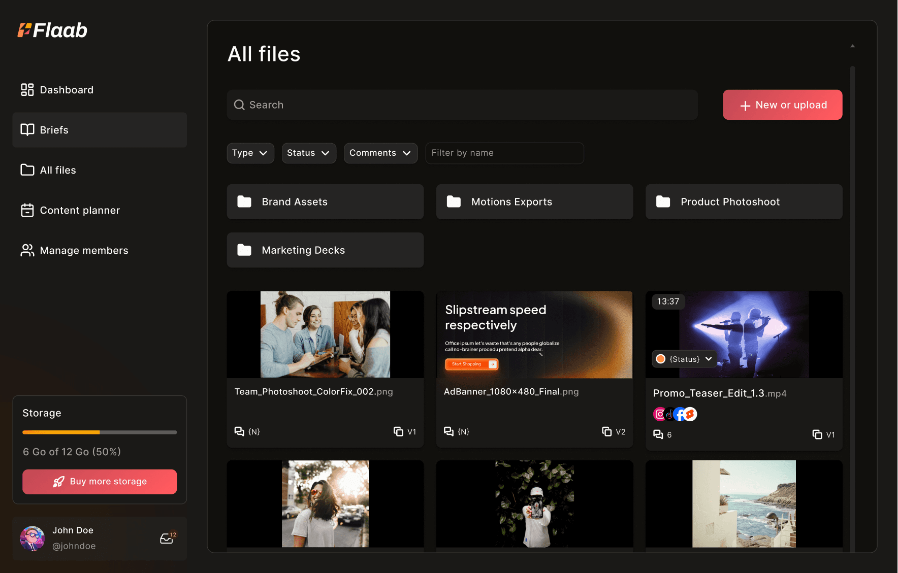 Flaab facilite la collaboration entre les profils créatifs (social media managers, motion designers, vidéastes, graphistes) et les parties prenantes en charge de la validation (brand, marketing, client) autour de la création de contenu.