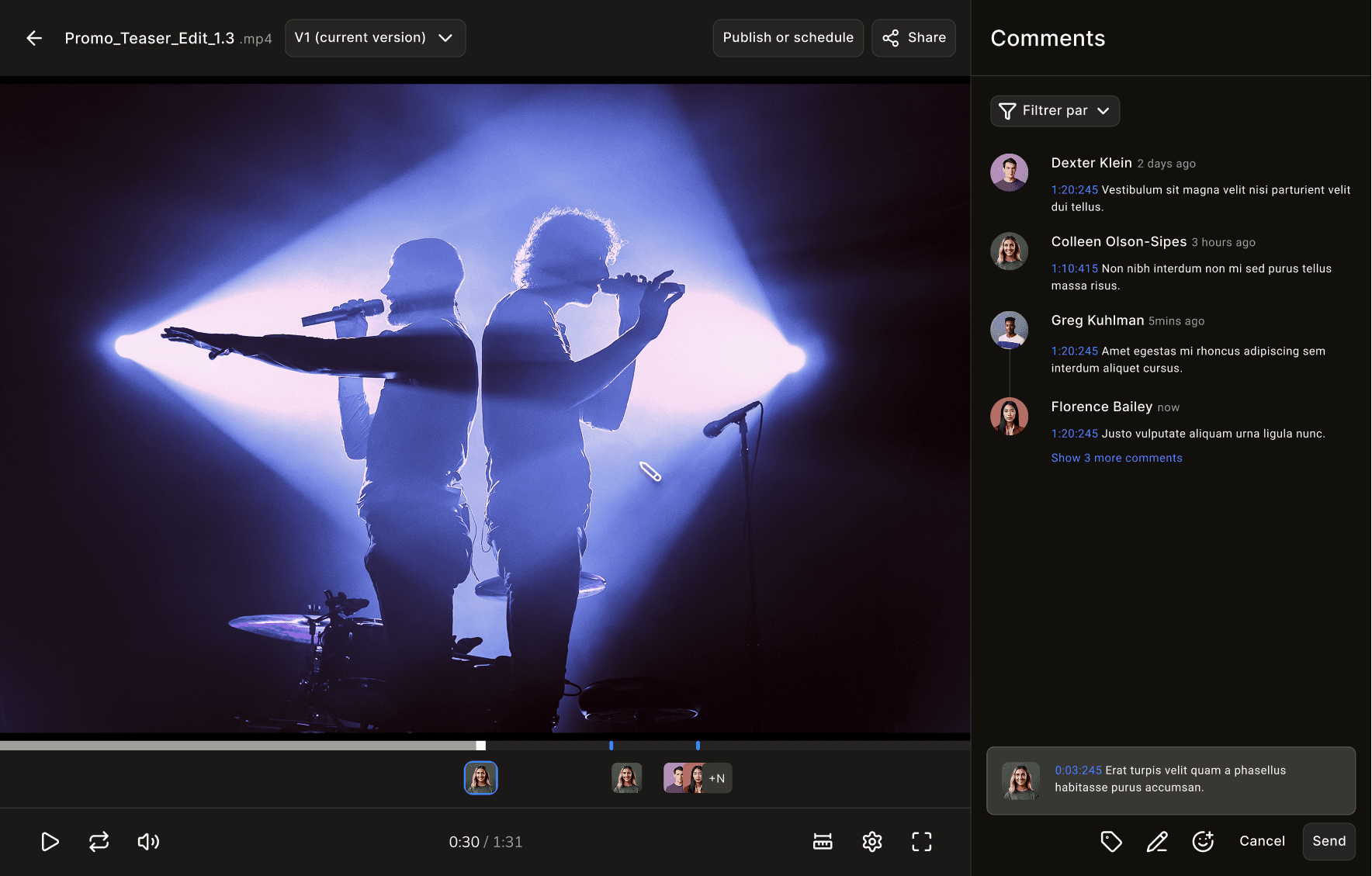 Tout doit se passer “sur le contenu” : visionnage, retours, réponses et validation, sans aller-retours dispersés.