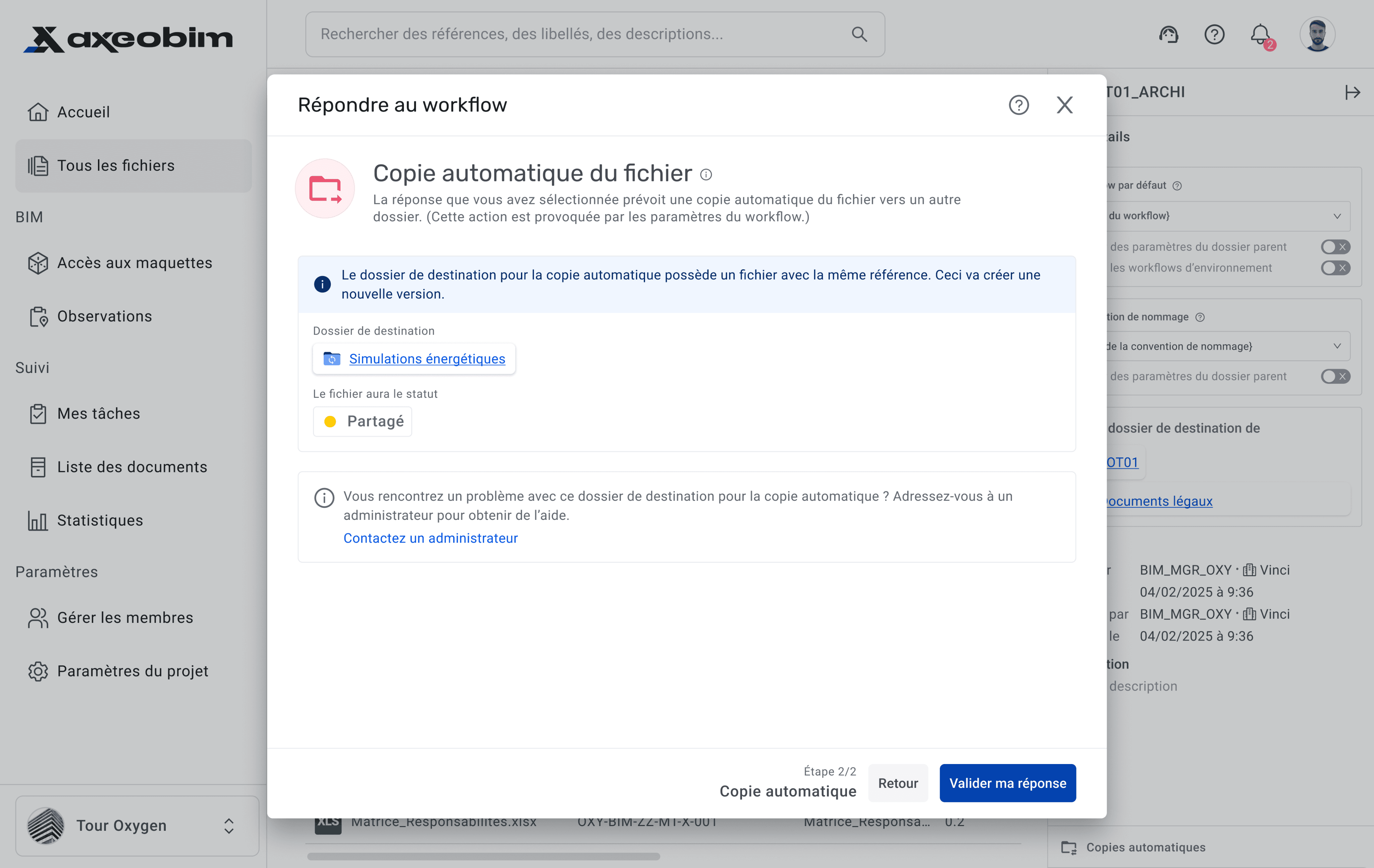 Les équipes projet de nos clients manquaient de visibilité sur l’état réel de validation des fichiers, dans des workflows impliquant de multiples intervenants, contrôles et transferts documentaires.