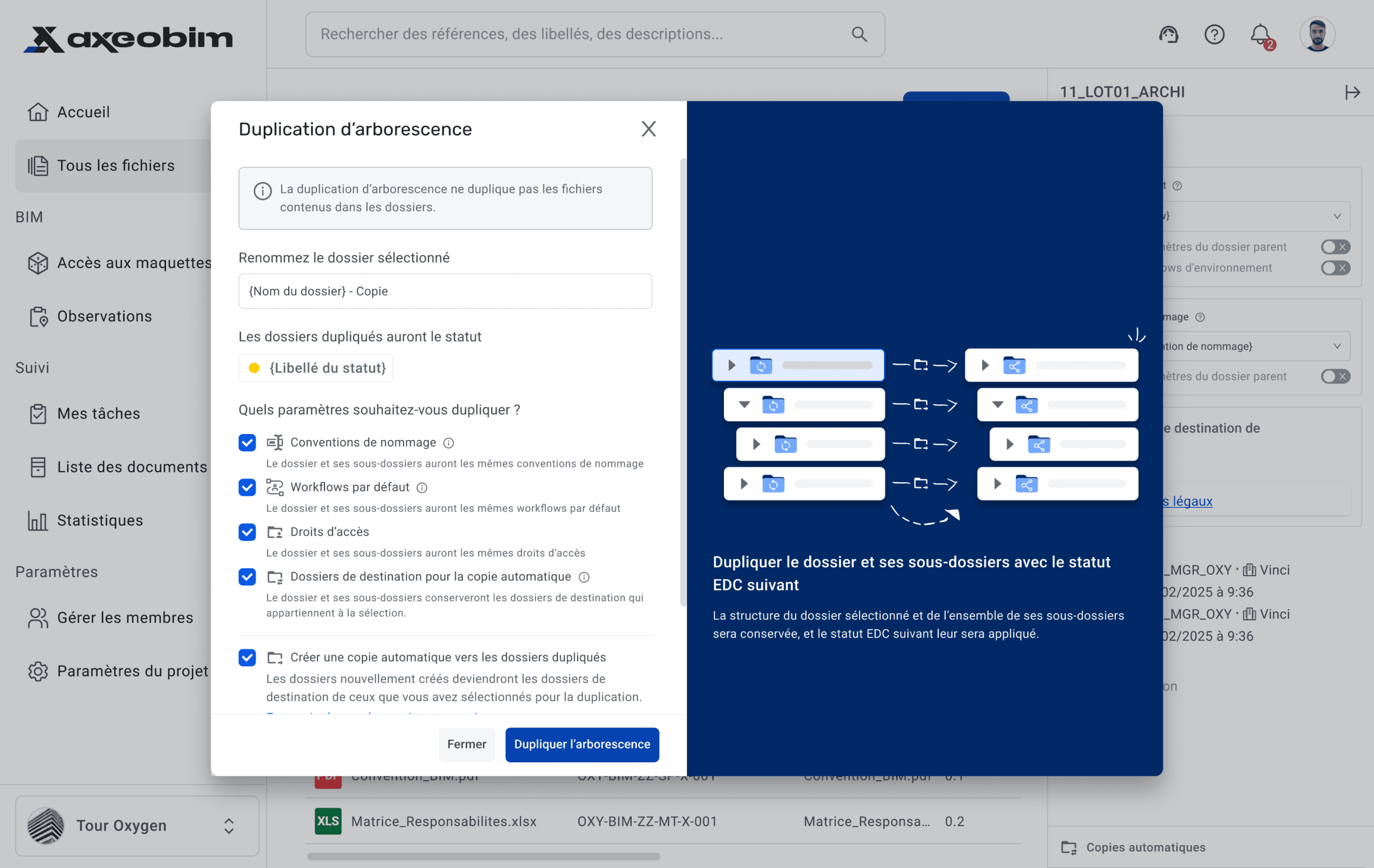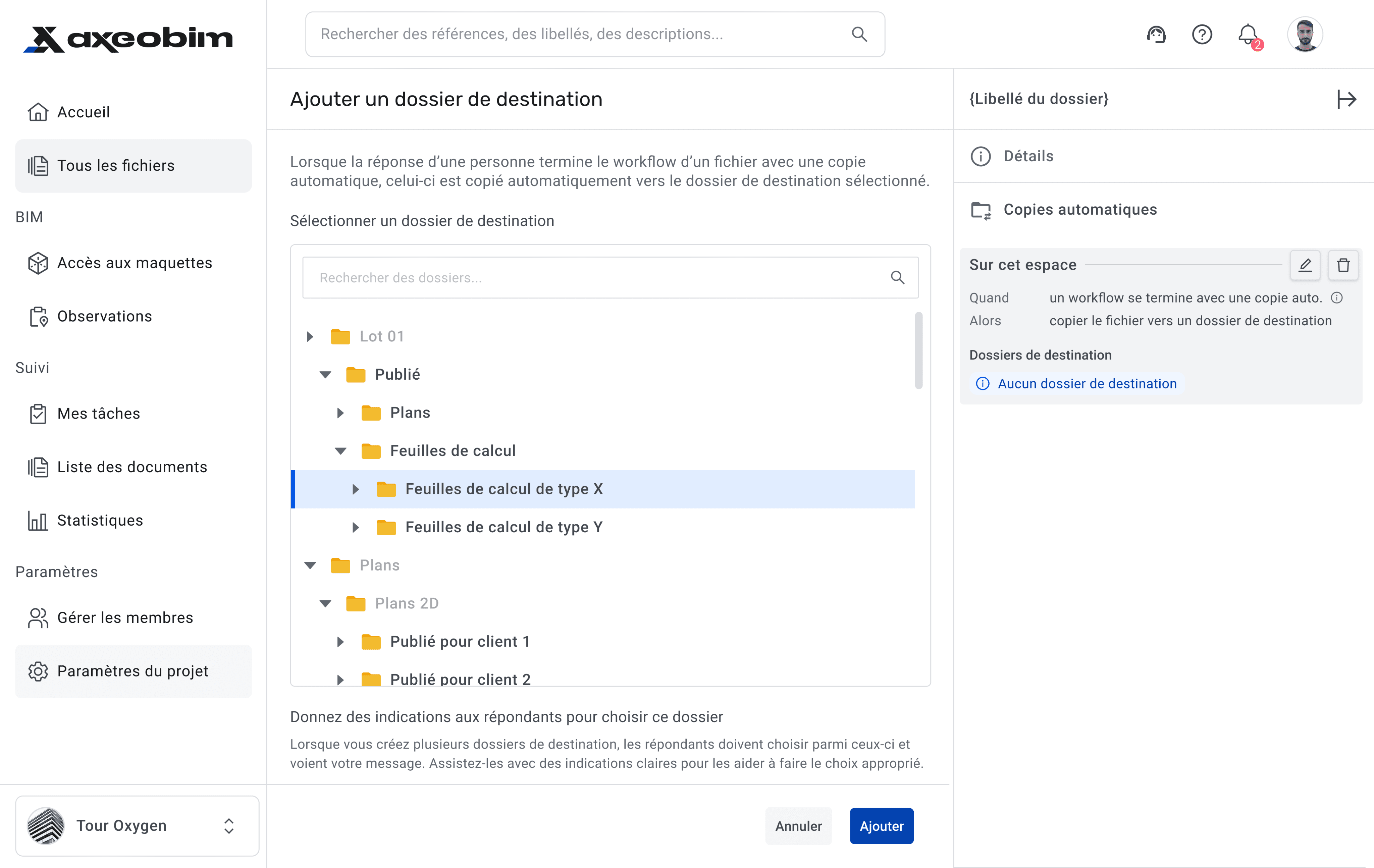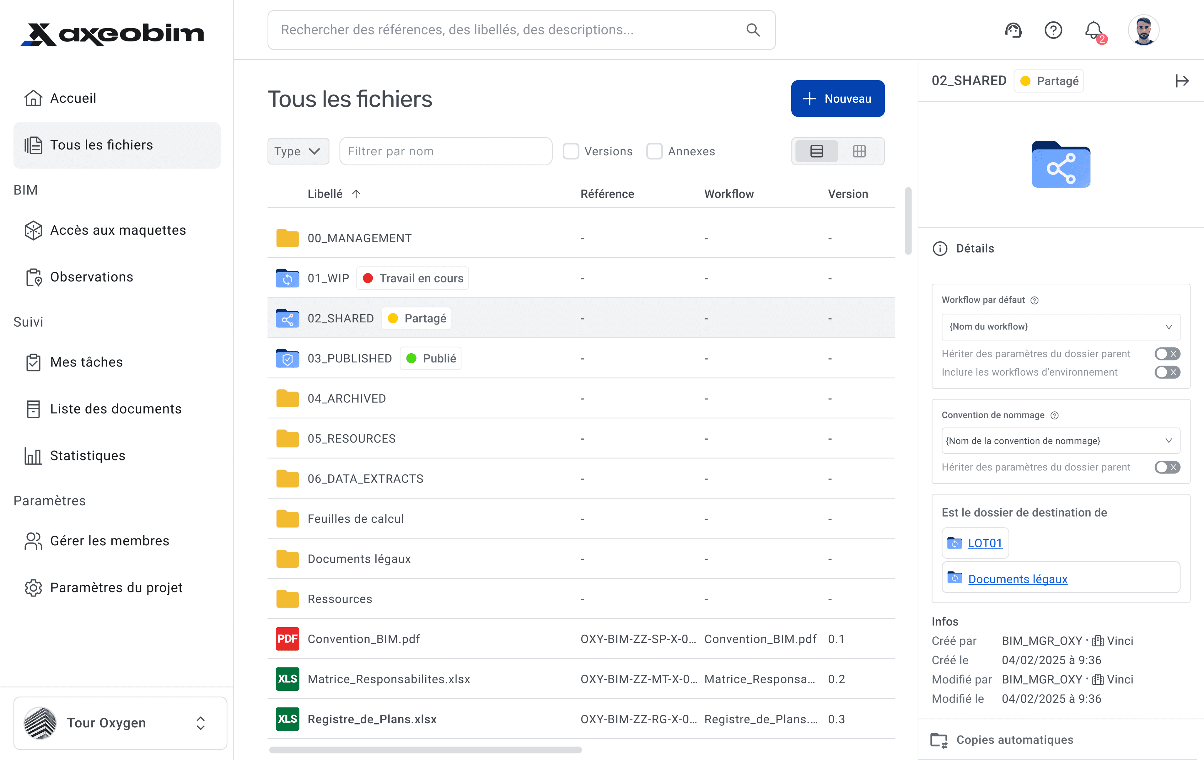 AxeoBIM est une application de stockage de fichiers et de collaboration dédiée aux projets de construction de grande envergure : à mi-chemin entre un Jira et un Dropbox, adapté aux enjeux du BTP.