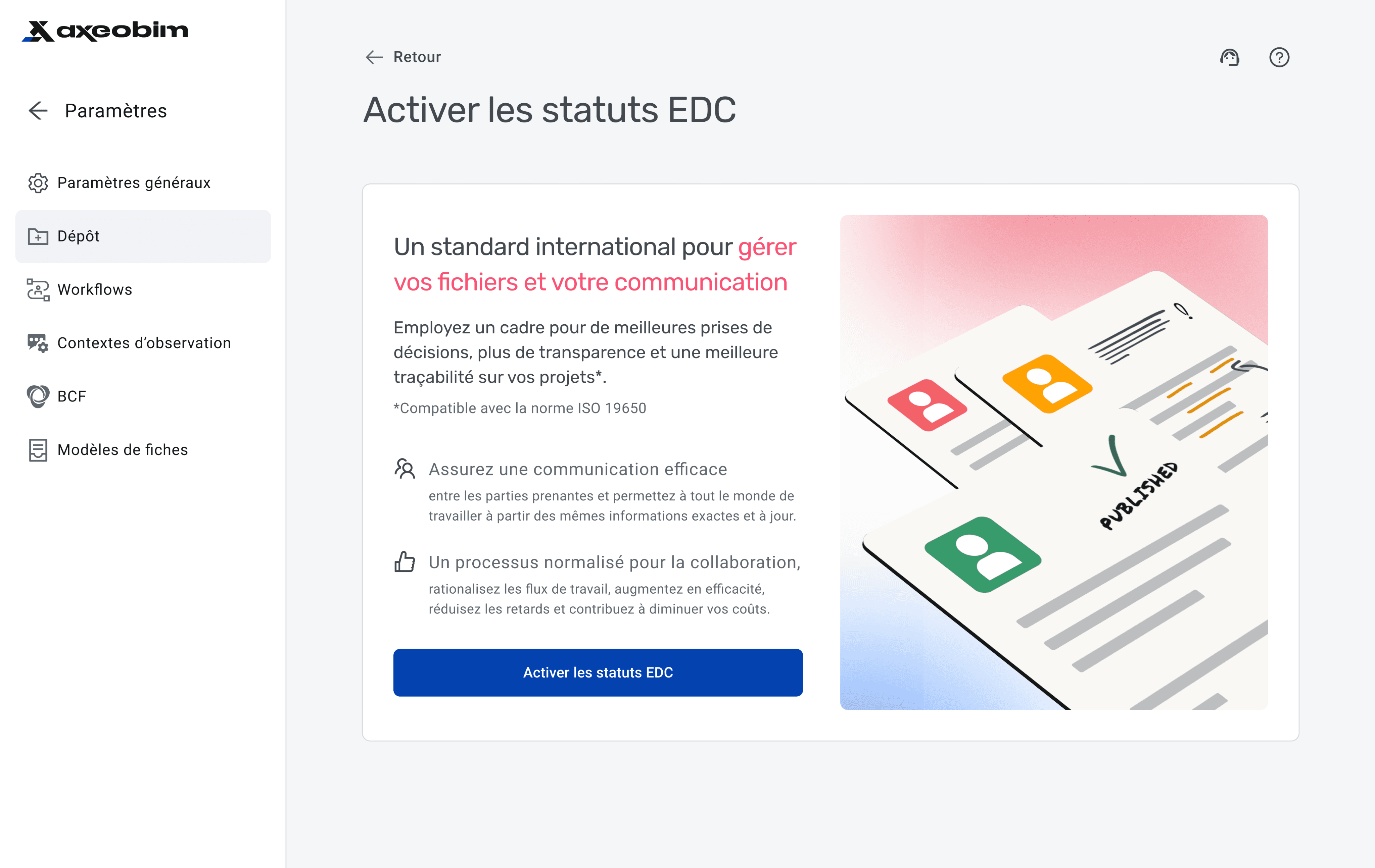 Le défi n’était pas seulement de créer un workflow ISO 19650, mais de le rendre compréhensible, personnalisable et déployable sans casser les logiques documentaires propres à chaque client.